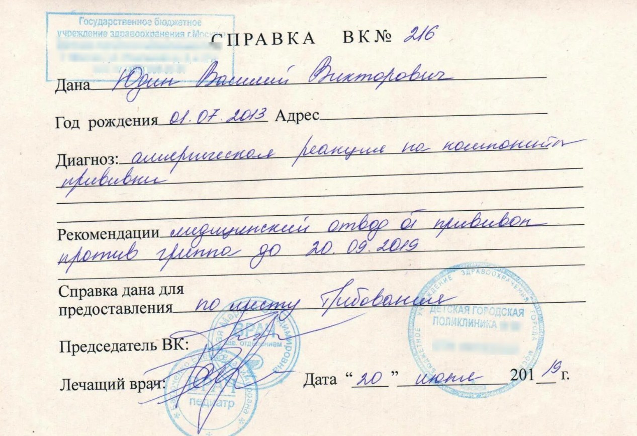 Если у ребенка есть хотя бы одна из указанных проблем, то вы совершенно легально можете претендовать на получение справки медотвода от прививок. Получить документ можно в поликлинике по месту жительства, на бесплатной основе.
